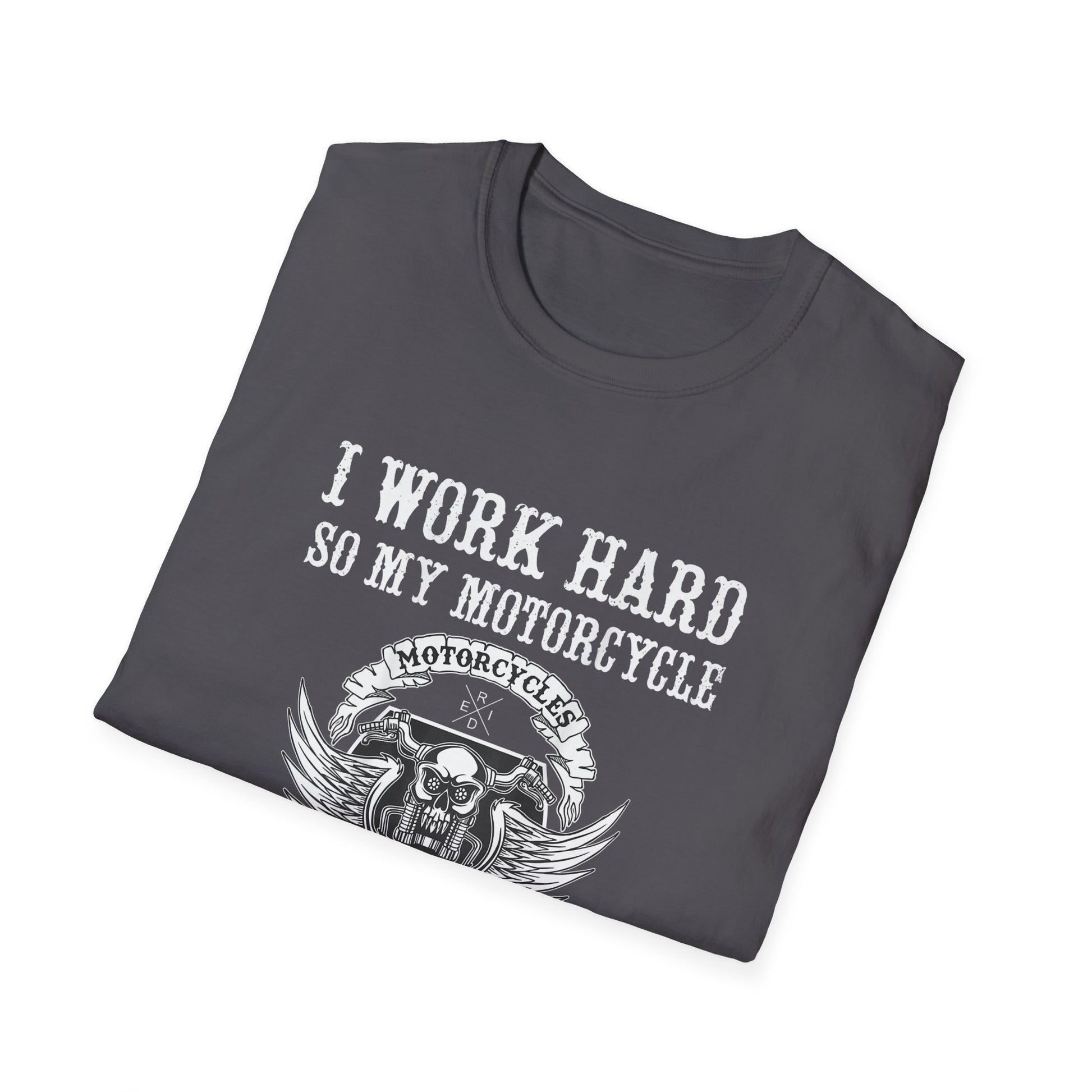 Vintage style T-Shirt with a funny motorcycle design, perfect for those who work hard to support their love for motorcycles. This soft and durable T-Shirt is ideal for adults who enjoy a casual and comfortable style. Suitable for motorcycle enthusiasts or as a gift for birthdays, Father's Day, or other special occasions.